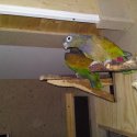 Grünzügelpapageien benötigen eine ausgewogene und abwechslungsreiche Ernährung. Bei mir besteht etwa die Hälfte des Futters aus unterschiedlichen Früchten, wobei ich alles anbiete was an Obst erhältlich ist. Da die Vögel das Obst mit dem Fuß festhalten, Stücke abbeißen und den Rest fallen lassen, bieten wir es ihnen in kleine Stücke geschnitten als eine Art Obstcocktail an. Mohrrüben und Maiskolben werden im Ganzen auf eine Ast gespießt. Da Grit- bzw. Kalksteine überhaupt nich beachtet werden, mische ich einmal wöchentlich etwas Grit unter das Obst. Die andere Hälfte des Futters besteht aus eunem handelsüblichen Papageienfutter, welches jedoch fasr nur gekeimt oder gequellt gereicht wird. Zusätzlich erhalten meine Grünzügelpapageien täglich einen kleinen Napf mit Loribrei und es ist erstaunlich mit welcher Intensität dieser Brei von ihnen aufgenommen wird. Der Napf wird regelrecht leergeschleckt. Die Grünzügelpapageien erhalten regelmäßig große frische Zweige. Die Blätter werden abgebissen und die Rinde regelrecht abgeschält bis nur noch nackte Äste übrigbleiben.