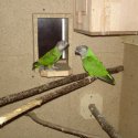 Eine Voliere sollte an einem geschützten Platz stehen. Kappapageien sind gerade bei einer Eingewöhnungsphase extrem scheu. Eine Voliere sollte in der Länge mindestens 3 m aufweisen, besser wäre hier sicherlich sogar 4 m. Nur hier können die Vögel einen Strecke fliegen. Die Breite sollte hierbei bei 1,5 m und die Höhe bei 2,50 m liegen. Kappapageien vertragen Temperaturen bis zum Gefrierpunkt, es muss jedoch ein frostfreier Raum zur Überwinterung vorhanden sein. Besser ist die Vögel nicht unter +5°C zu halten.
